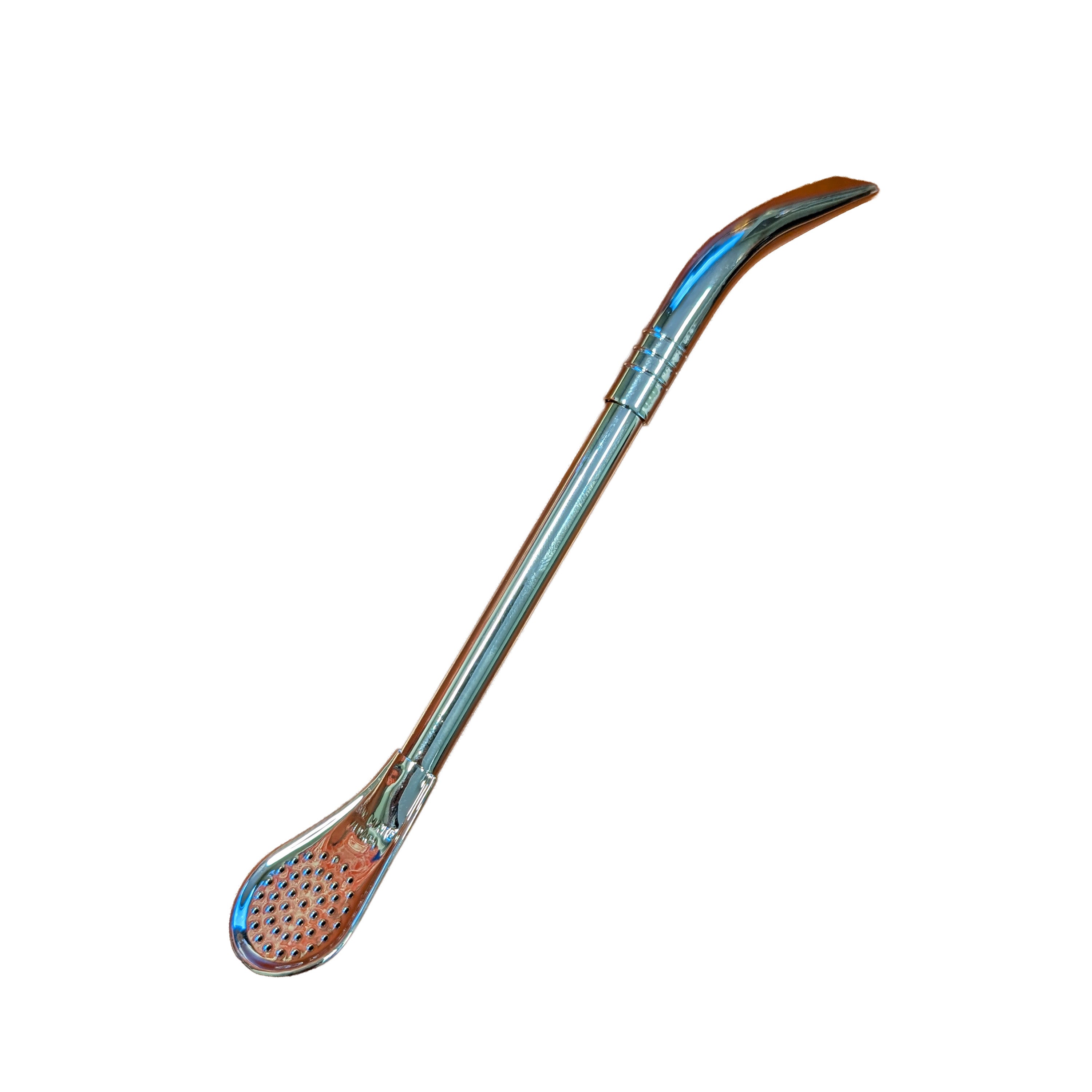 Con un filtro tradicional tipo cuchara y una boquilla curva, esta bombilla larga proporciona una filtración suave y un sorbo cómodo. Su longitud extendida la hace ideal para mates grandes o mates imperiales más profundos.