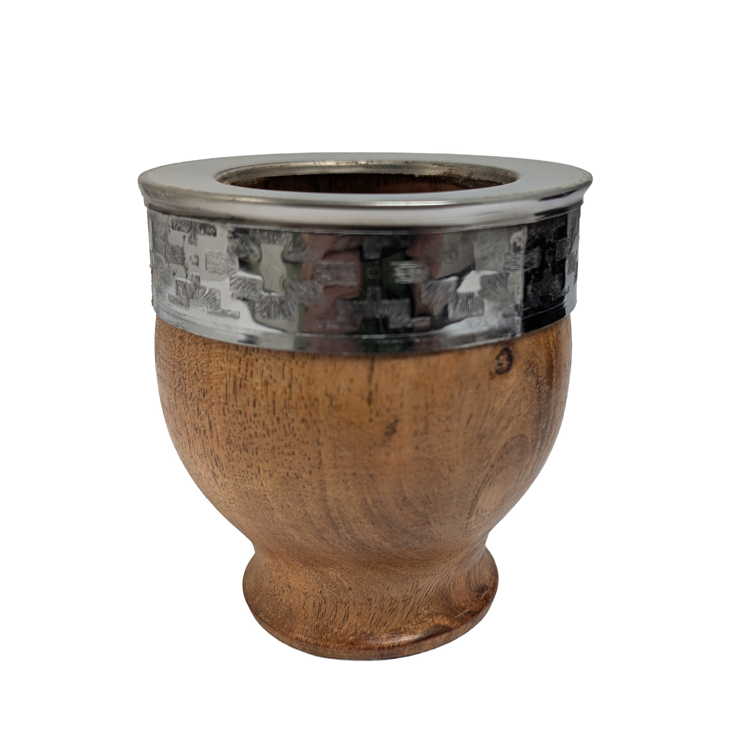 Experimente la yerba mate al más puro estilo argentino con este Mate Imperial de Algarrobo , elaborado con madera maciza de algarrobo y rematado con una resistente virola de acero inoxidable. El formato Imperial se distingue por su boca más ancha y cuerpo redondeado, ofreciendo comodidad y una generosa capacidad, ideal para rituales diarios o para compartir.